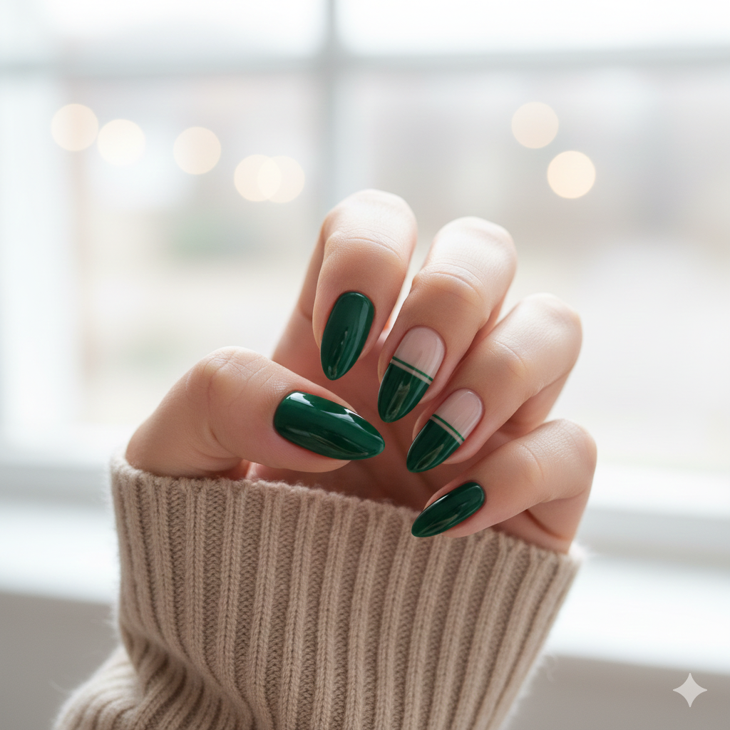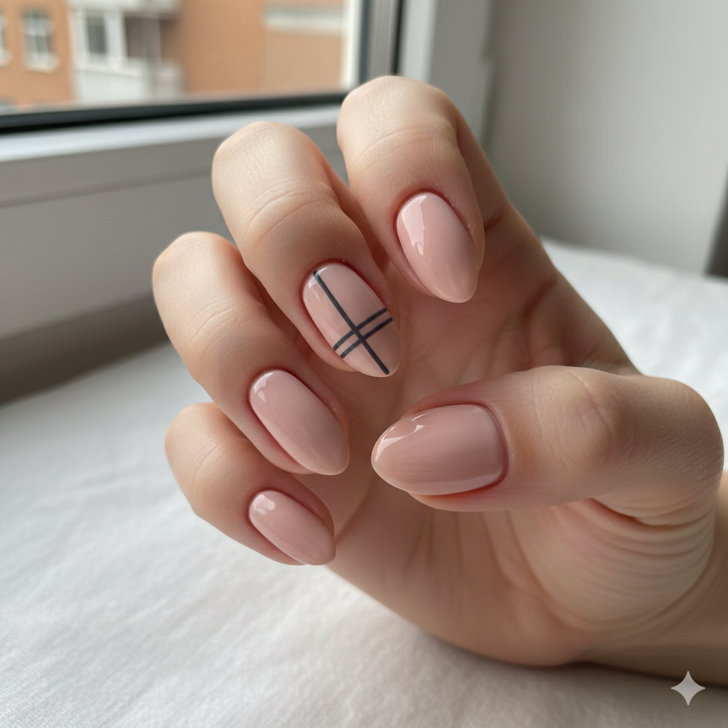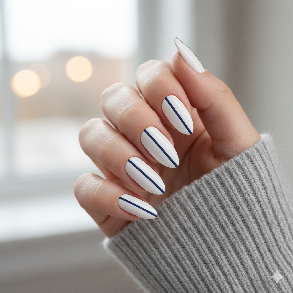 - Tools Needed: Base coat, one color polish (e.g., deep burgundy or navy), and striping tape or a very thin nail art brush.