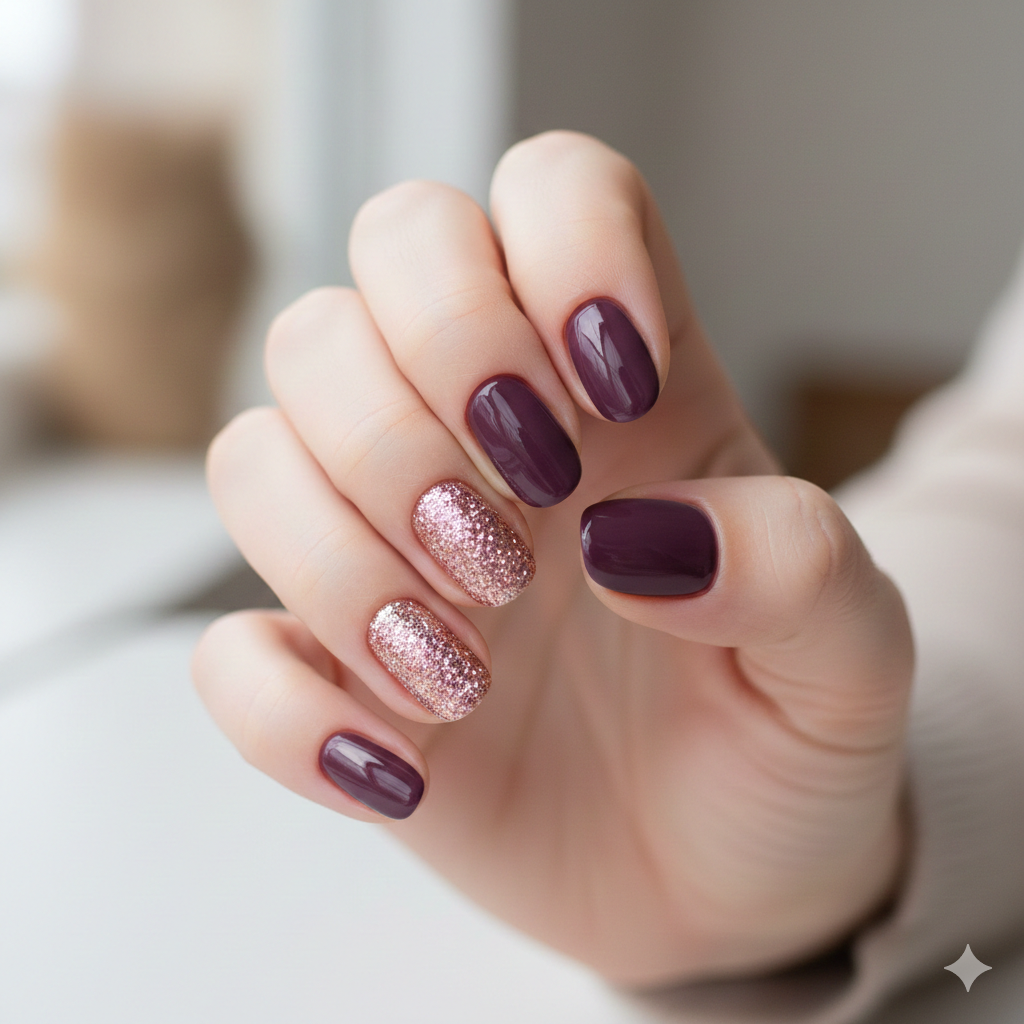 This is perhaps the simplest way to add a touch of glam without much effort. You paint all your nails a solid color, and one nail (usually the ring finger) gets a full glitter treatment.