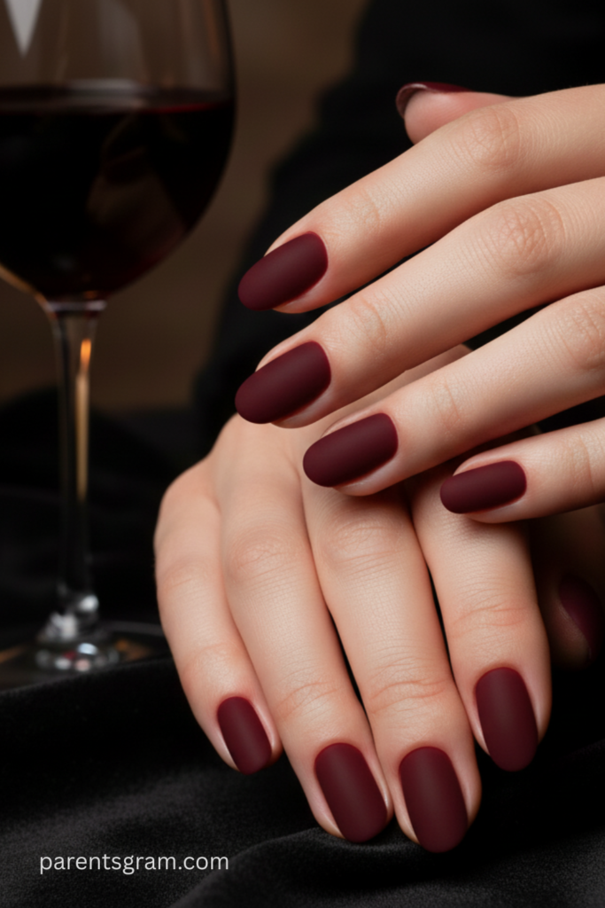 Transform any dark red polish into a modern masterpiece by using a matte top coat.
