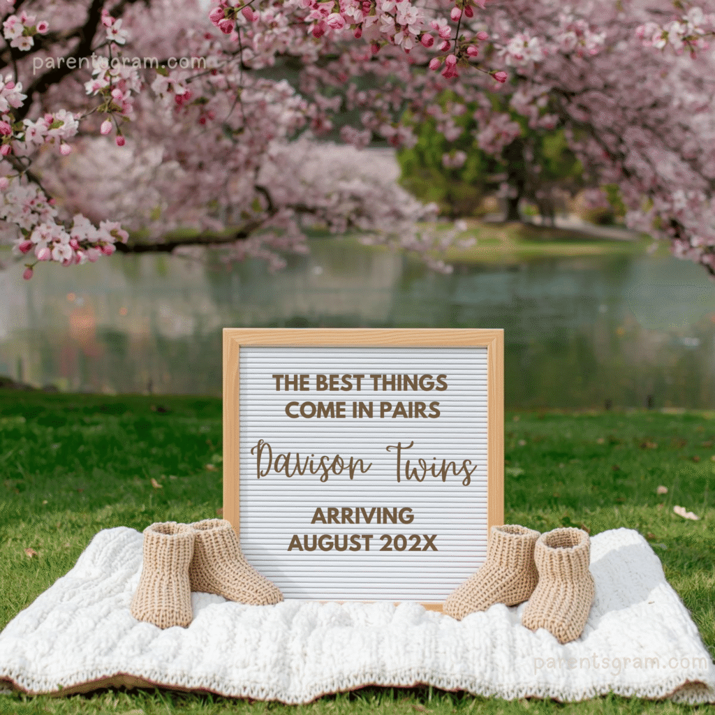 👉 Perfect for: twin pregnancy announcement, spring twin baby reveal, cherry blossom twin announcement